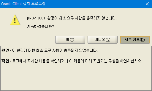 oracle 11gr2 client 설치시 발생한 오류