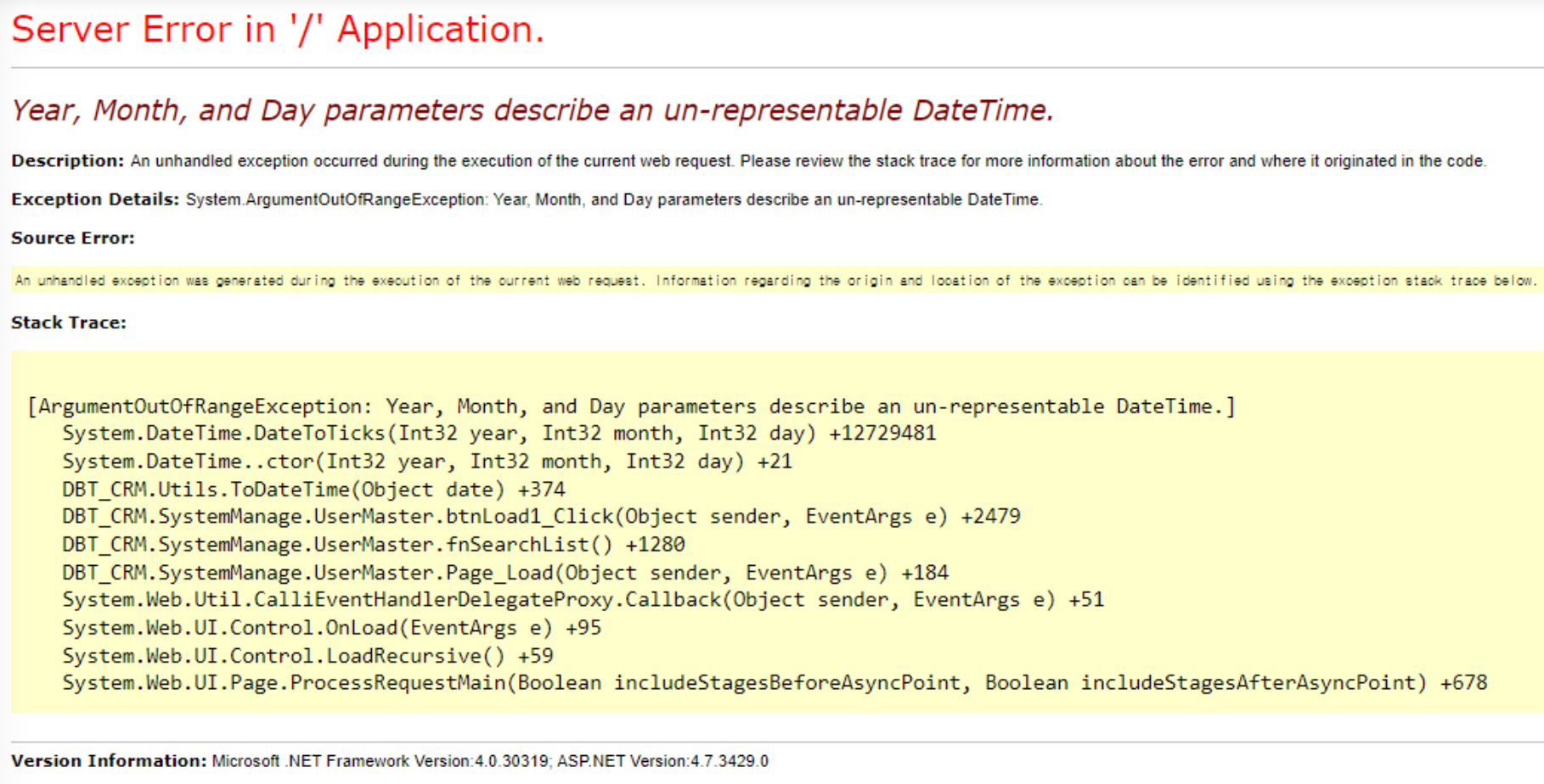 Year, Month, and Day parameters describe an un-representable DateTime