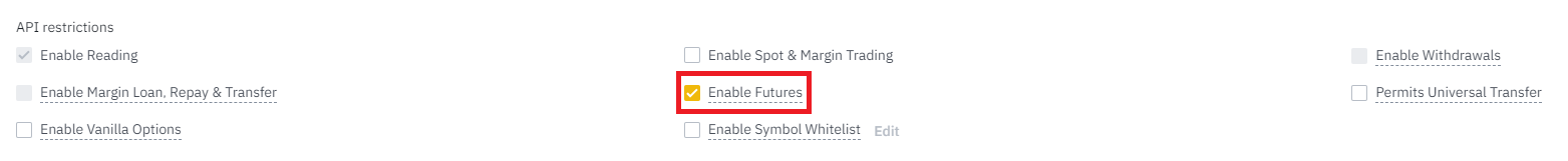 Enable Futures 체크 후 Save 해주면 선물 자동거래 매매 준비는 다된 상태입니다.