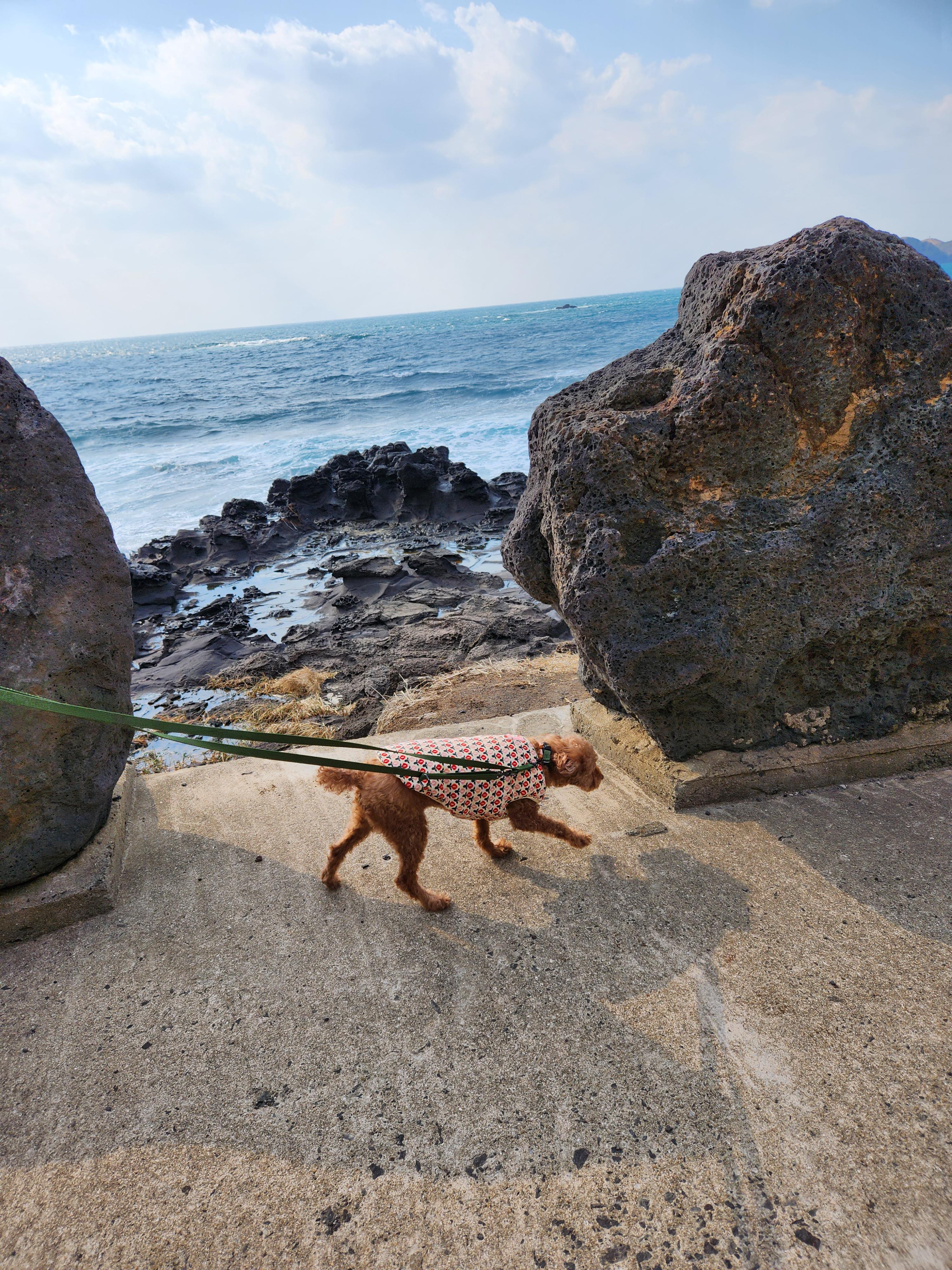 해수욕장 간단히 보고 뽀링이 산책을 해야 될 때가 온 것 같아서 엉알해안산책로로 바로 출발하였습니다.!
